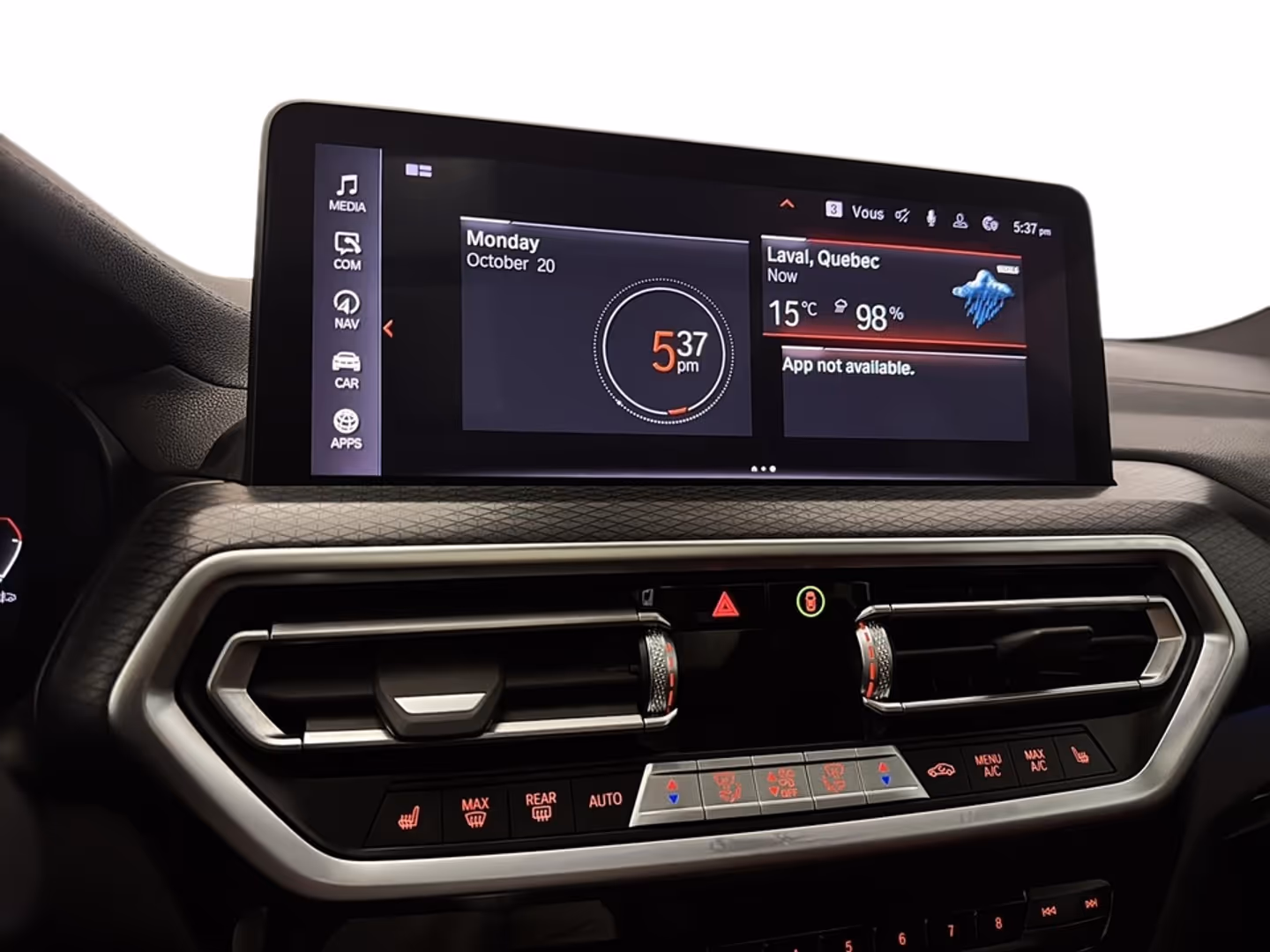 BMW X3 M40i 2023CARACTÉRISTIQUES PRINCIPALES• Moteur 6 cylindres en ligne turbo 3.0 L BMW TwinPower Turbo• Environ 382 chevaux et 369 lb-pi de couple• Transmission automatique sport à 8 vitesses• Traction intégrale intelligente xDrive (AWD)• Accélération environ 0-100 km/h en ±45 secondes• VUS sport et luxueux pouvant accueillir 5 passagersÉQUIPEMENTS DISTINCTIFS• Système multimédia BMW iDrive avec écran tactile• Apple CarPlay et Android Auto sans fil• Tableau de bord numérique BMW Live Cockpit• Système audio premium Harman Kardon disponible• Sièges sport en cuir chauffants• Volant sport multifonction gainé de cuir• Toit ouvrant panoramique• Suspension adaptative M avec modes de conduite• Éclairage DEL adaptatif signature BMW• Caméra de recul avec capteurs de stationnement• Surveillance des angles morts• Régulateur de vitesse adaptatifACHETER EN TOUTE CONFIANCE CHEZ DESMEULES CHRYSLER• Inspection complète par nos techniciens certifiés• Financement disponible sur place• Garantie prolongée disponible• Échange accepté• Jusqu’à 90 jours sans paiements (selon admissibilité)Disponible dès aujourd’hui chez Desmeules Chrysler.Les tarifs et informations présents sur notre site desmeuleschrysler.ca sont à jour et prioritaires. Les prix affichés sur des sites externes peuvent être sujets à un délai de mise à jour et ne constituent pas un engagement contractuel.Nous sommes ouverts les samedisTout type de financement possible aucun cas de refusNous parlons anglais aussi